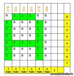 '...................................................' DEC |Chr|HEX Data $7E,$11,$11,$11,$7E,$00 '65| A |41 'команда Data записывает в EEPROM 5 байтов символа символа А начиная с нулевой ячейки памяти и в конце $00 пустой столбец нужен для отделения символов друг от друга Вся сложность у вас может возникнуть с правильной адресаций ячеек памяти. Напишем нашу первую программу вывода одного символа на экран, я привожу самый упрощенный вариант Code